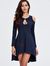 肩带长袖高低日礼服